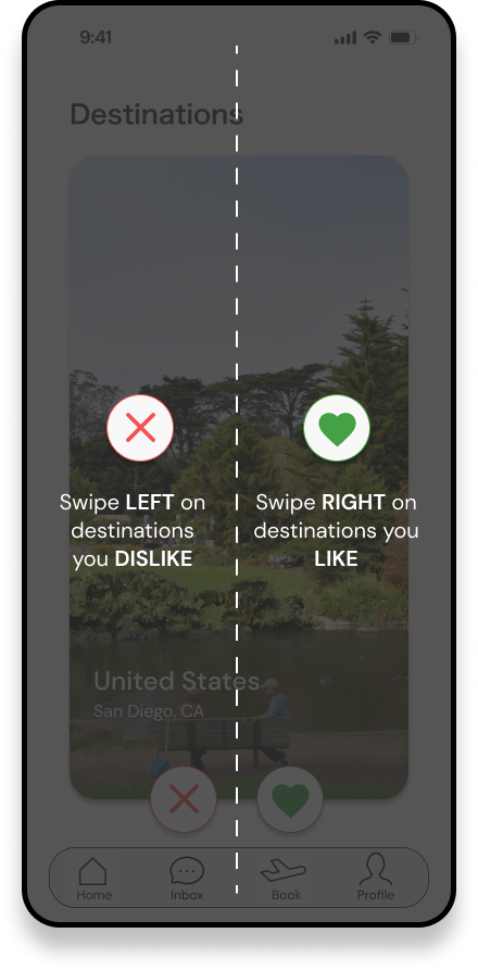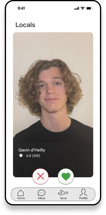 A mobile application that utilizes a swiping feature for users to determine travel destinations and matching with locals